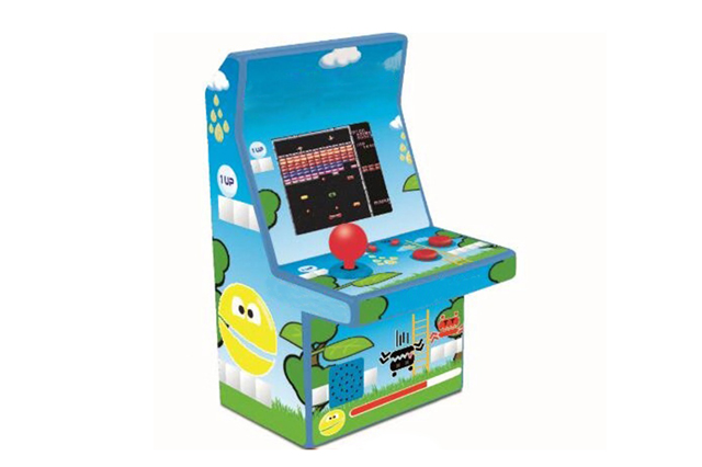 Micro Arcade Game Machine, pretty & petite pocket game console. 4.3inch screen, Built-in 100 games. Use AA*3 batteries, support up to 3-4 hours playing. NO AV out function. Good for promotion with nice packaging.